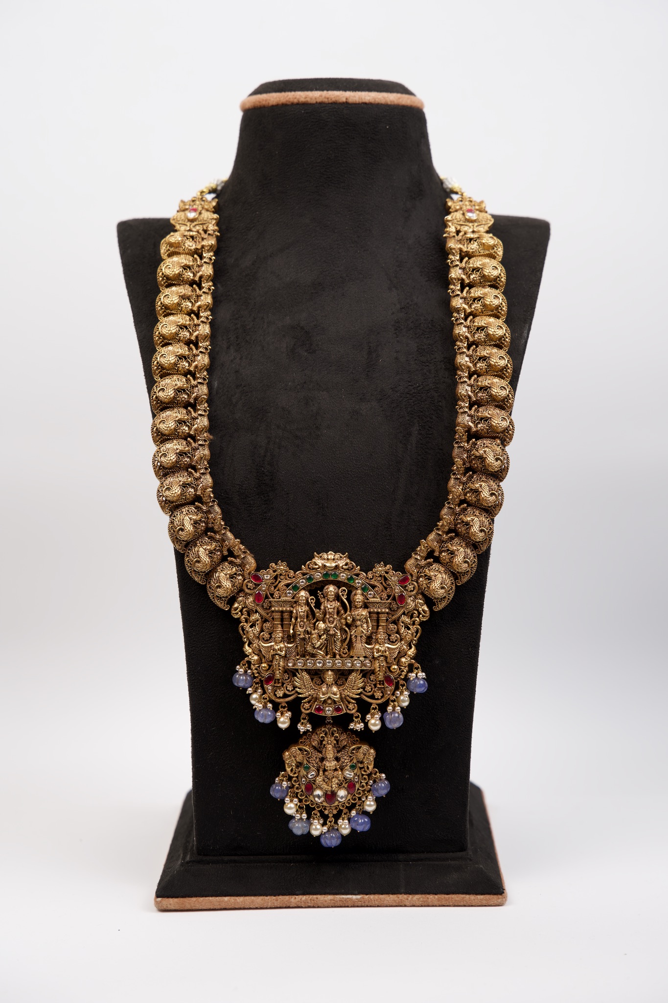 The hara is a long, layered ornament that holds a special place in South Indian tradition. Known for its grandeur, it is often worn on auspicious occasions and weddings as a mark of prosperity and elegance. Designed to beautifully complement both heavy bridal attire and festive wear, the hara flows gracefully, adding depth, richness, and a royal charm to any ensemble.