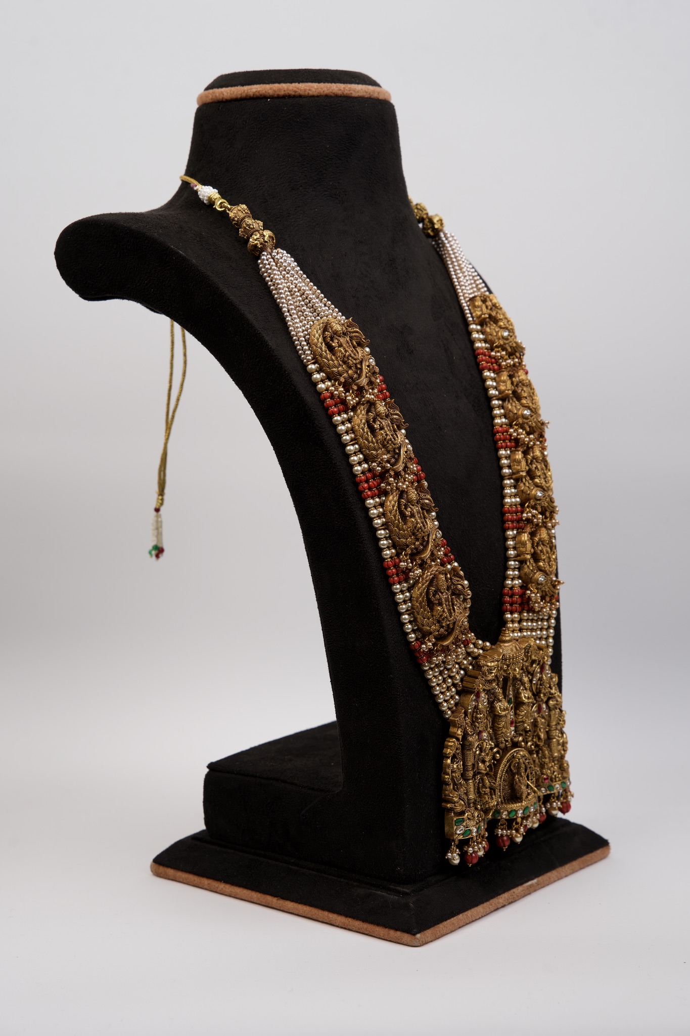 The hara is a long, layered ornament that holds a special place in South Indian tradition. Known for its grandeur, it is often worn on auspicious occasions and weddings as a mark of prosperity and elegance. Designed to beautifully complement both heavy bridal attire and festive wear, the hara flows gracefully, adding depth, richness, and a royal charm to any ensemble.